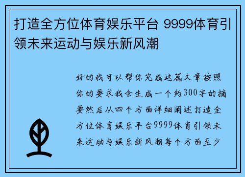用专业定义竞技,用热忱传递体育精神